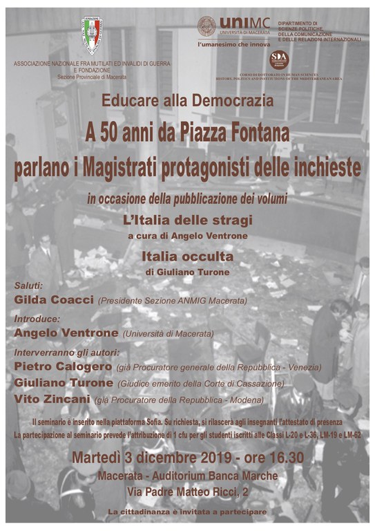 EDUCARE ALLA DEMOCRAZIA A 50 ANNI DA PIAZZA FONTANA PARLANO I MAGISTRATI PROTAGONISTI DELLE INCHIESTE
